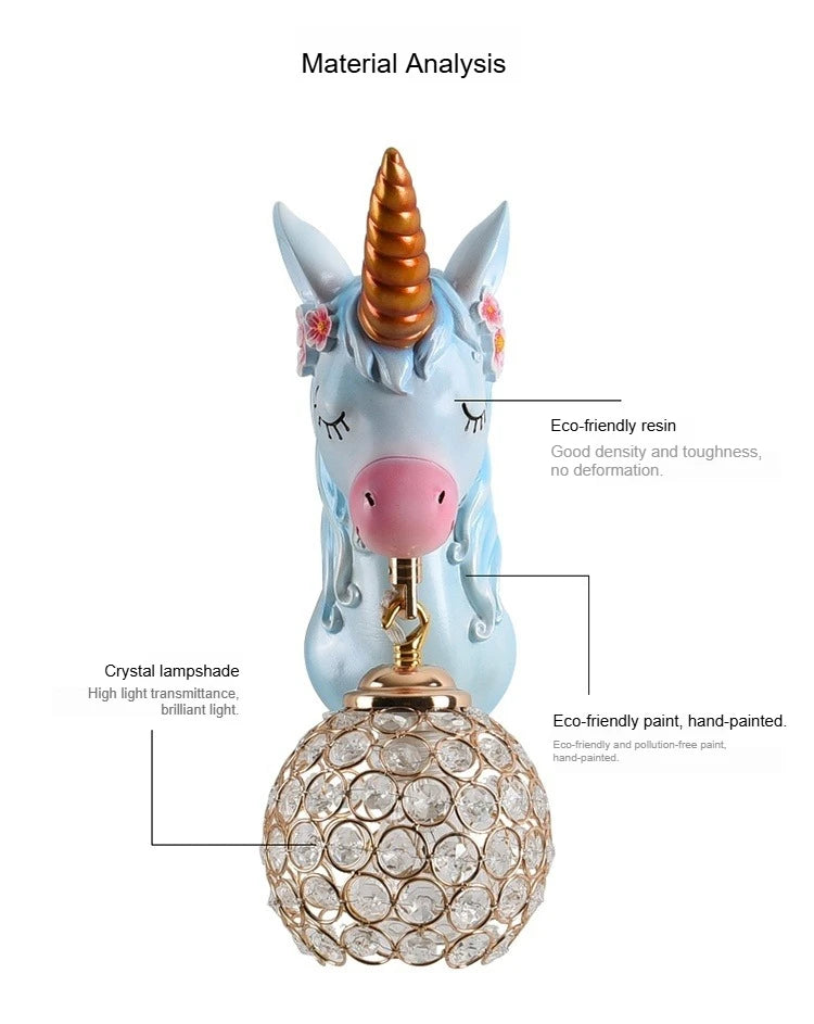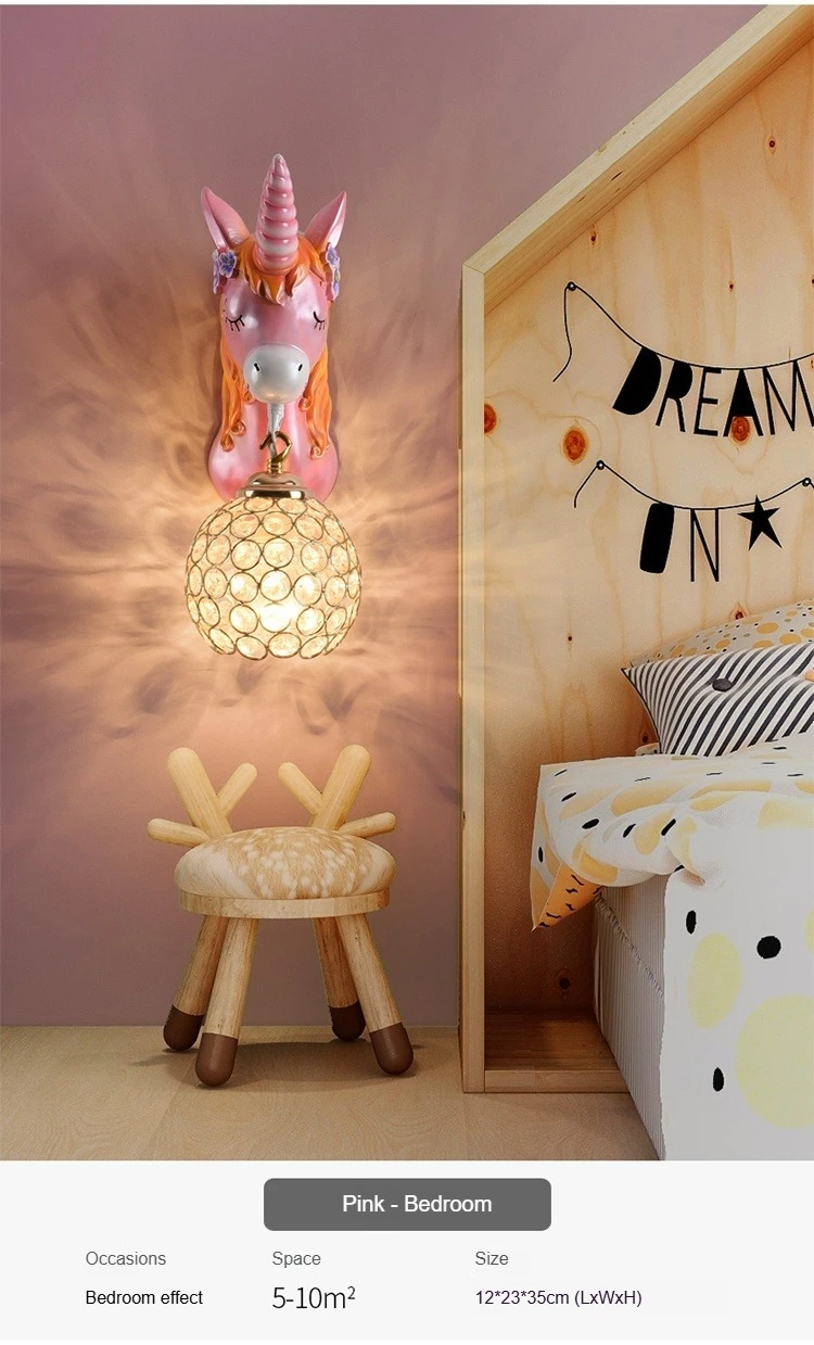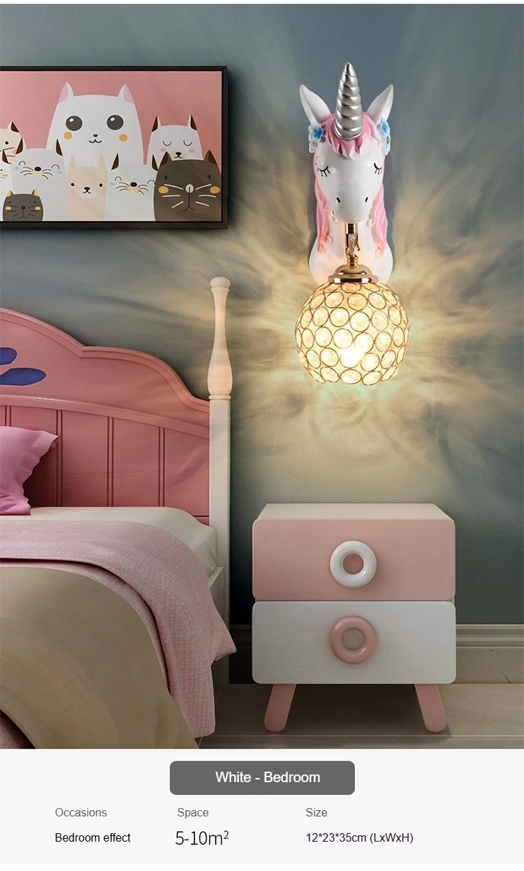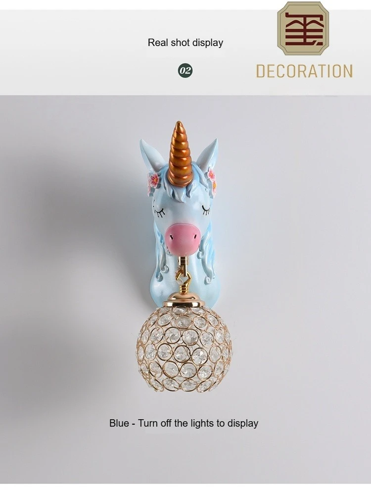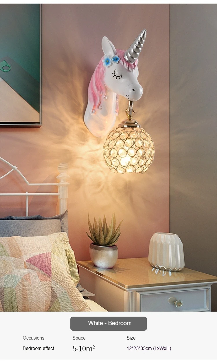 Boys Girls Room Decoration Simple Bedside Sconce Study Aisle Children's Room Bedroom Living Room Unicorn Wall Lamp
