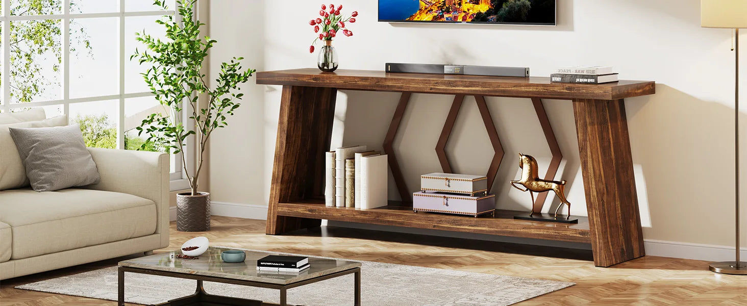 Farmhouse Console Table,Narrow Long Sofa Entryway Table, 2-Tier Wood Couch Foyer Accent Table for Living Room, Hallway